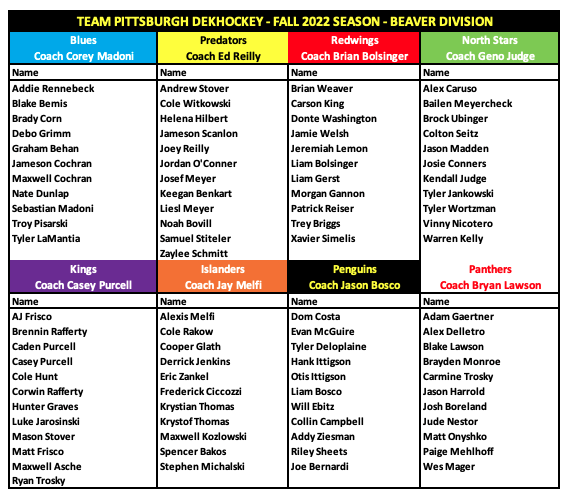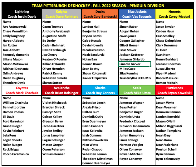 12+ Pitt Hockey Roster